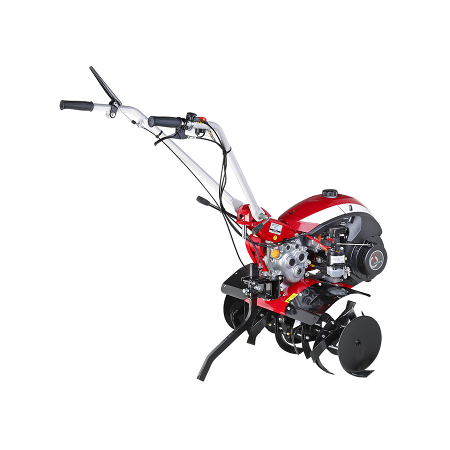 Esta máquina destaca por ser compacta y ligera, lo que facilita el giro en espacios estrechos y reduce la fatiga del operario. Es compatible con diversos accesorios, como el aporcador (ridger), permitiendo realizar tareas de arado, preparación de caballones y elevación de tierra.